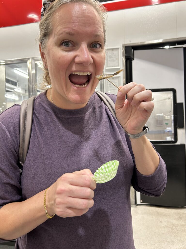The least familiar sample we came across, was the achovies. Maylin and Joe tried them first, and when she came to tell Téa and I, she could not stop grinning and proudly shouting “I ate a fish head, I ate a fish head”! I, on the other hand, got the body, sans head.