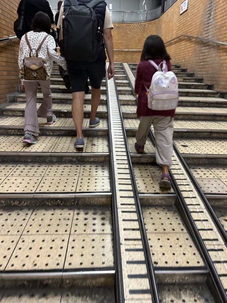 The stairs up and down from the underground passageways have bike/stroller lanes!