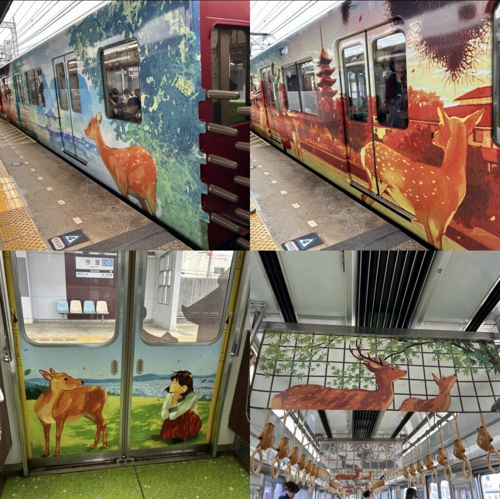 Friday means Norwegian homework! After both girls made quick work of their language class this morning, we get ready and eat a quick lunch before heading out. We have a long way to go today! To get there, we get to ride on the Nara deer train! Check out the hand holds: