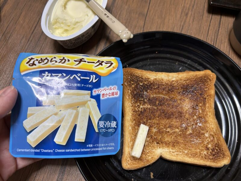 Joe bought the below “treat”. His excuse is “it’s camembert”. It’s not camembert. The fine print is even in English: “Camembert-blended “Cheetara”. Cheese sandwiched between processed fish sheets.”