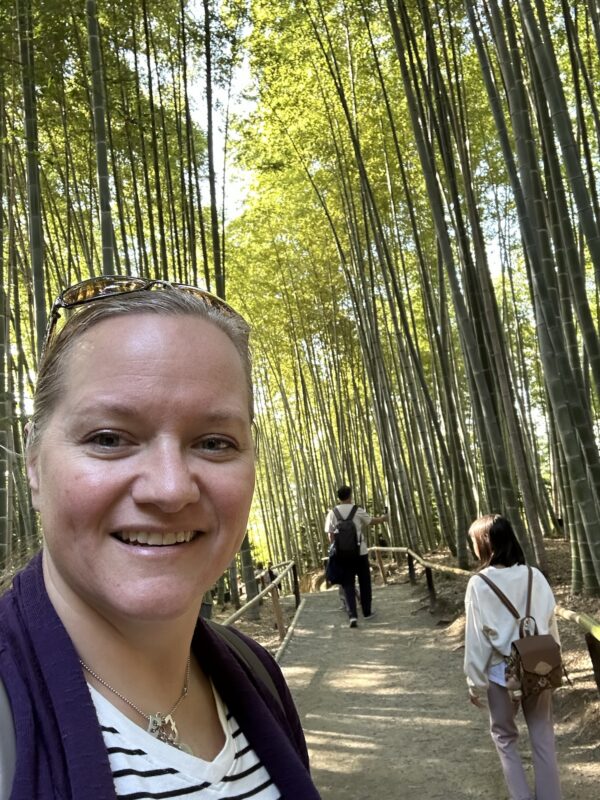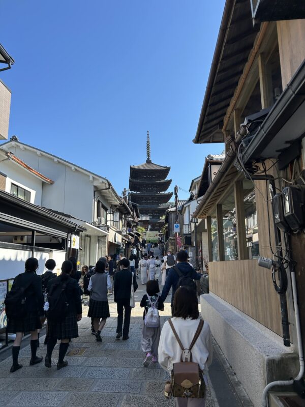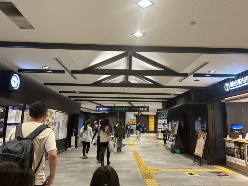 When we got on the train, it was as quiet as an exam classroom! We kept our noisy wrappers packed away, and did not enjoy our treats on our way to… KYOTO! We always knew we’d be back when the heat died down, and so today was the day. We could have stayed on the train for a little bit longer, but both girls had had enough of the rocking of the train and wanted to get off.
