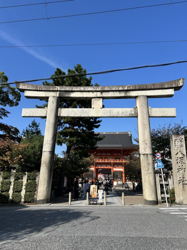On our way back down the hill there are still sights to be seen in all directions. The Yasaka Shrine has a Torii gate to guard the entrance: