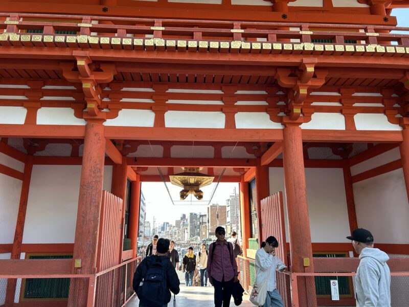 The shrine grounds had lots of activity today, and snack vendors in all directions. It smelled pretty good in there, some might even say heavenly! And then, I turned left, looked out through the Western Tower Gate, and reminded that big city life was just beyond…