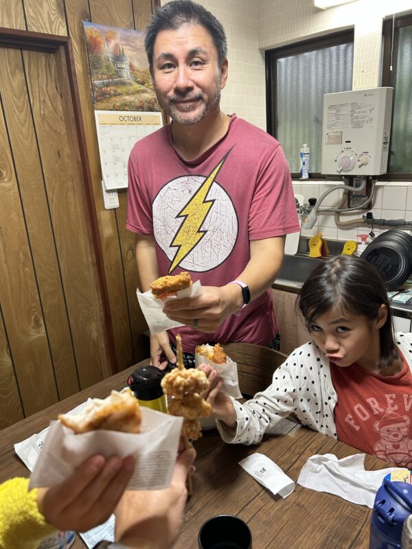 Téa and I knew that we were planning cup noodles for lunch, so we decided to pick up a few pieces of fried chicken at 7Eleven on our way home to bulk up our meals.