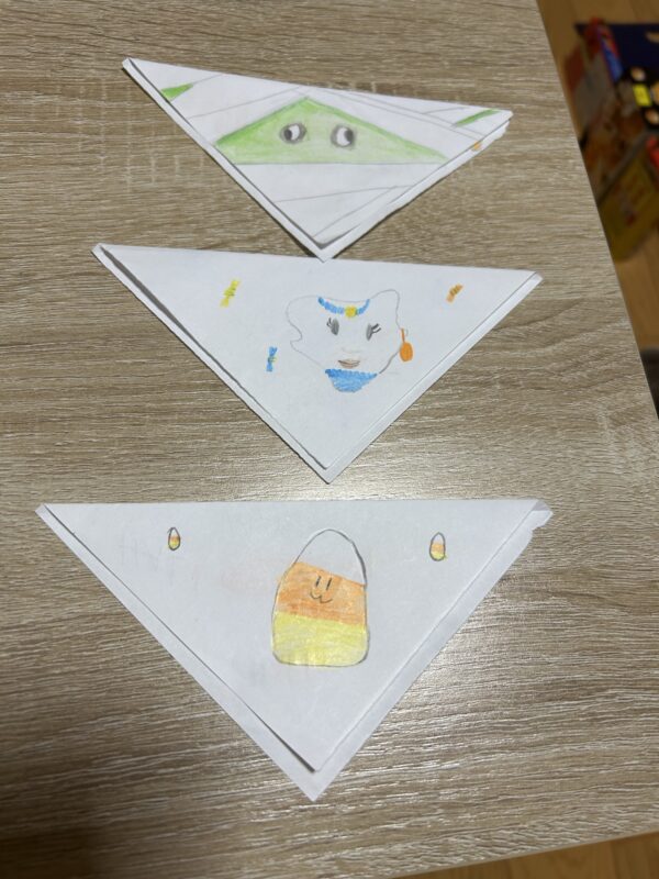 Téa spent some time last night after Maylin went to bed crafting Halloween card for the rest of us, so they were waiting on the kitchen table for us when we got up this morning.
