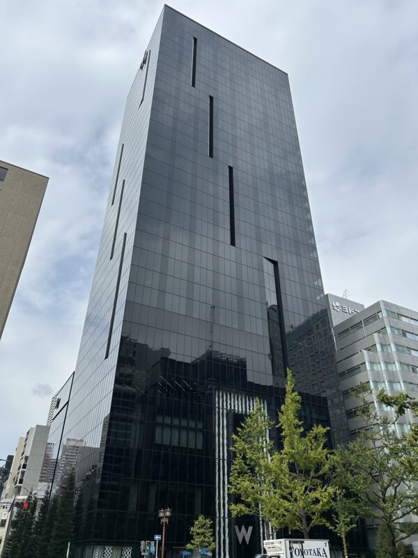 After our café visit, we decided to walk out onto the big fashionable avenue. The first thing that met my eyes was a black glass building with some interesting shapes, and I noticed it was the W hotel. We ducked into the lobby to look around, because W hotels are always interesting on the inside as well. Tiny lobby with friendly staff were able to help answer our questions, and we made our way back out.