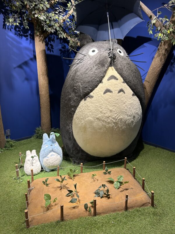 We walked on down to the Daimaru building, two malls side by side with connecting hallways on certain floors. The Ghibli store is here, as is the Pokémon Café that we visited long ago. Now that we’ve actually watched the Totoro movie, this photo op makes so much more sense, and I don’t even think I noticed the sprouting plants last time! I made sure they made it into the photo this time…