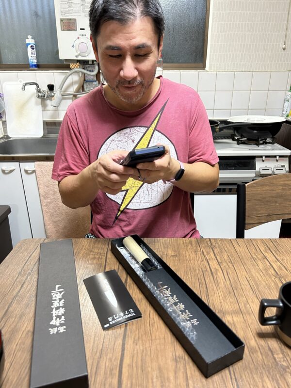 I get home, and Joe is sitting there grinning at the kitchen table, just waiting for me to get home so he can open his/our new knife.