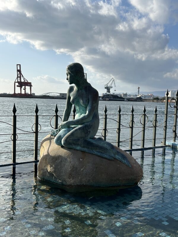 Bubble teas in hand, we took a walk outside as we were getting close to our timed entry slot of 3pm. Lucky we did, I never would have spotted The Little Mermaid otherwise! This is actually a copy of the original, a statue gifted to Port of Osaka from Port of Copenhagen, as the two are sister ports! I’ve visited the original in Denmark a few times, and was so surprised to see her again here. There’s a neat little plaque beside her water feature, that explains the story behind the mermaid, her creator Hans Christian Andersen, his fairytale and the two ports, complete with a world map!