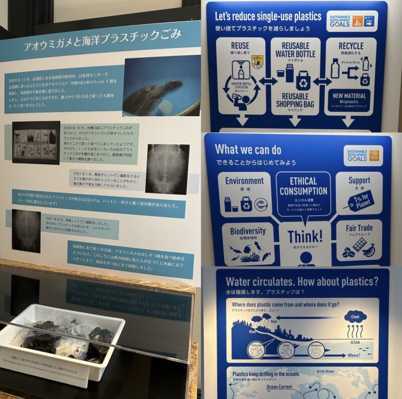 There were also exhibits on the types of plastic they have found inside rescued ocean animals, even one example of the tiny plastic pieces that killed a whaleshark. It is devastating that we humans can’t keep our trash away from the ocean! The signage in this area went hand in hand with what the girls have both been looking at for Science and Technology in the last couple of weeks:
