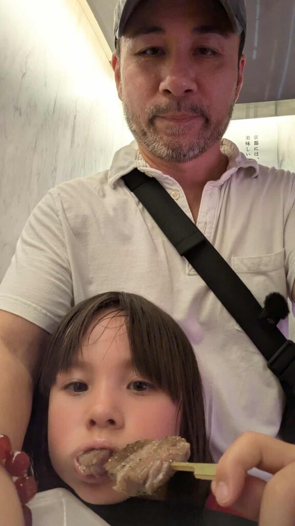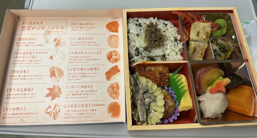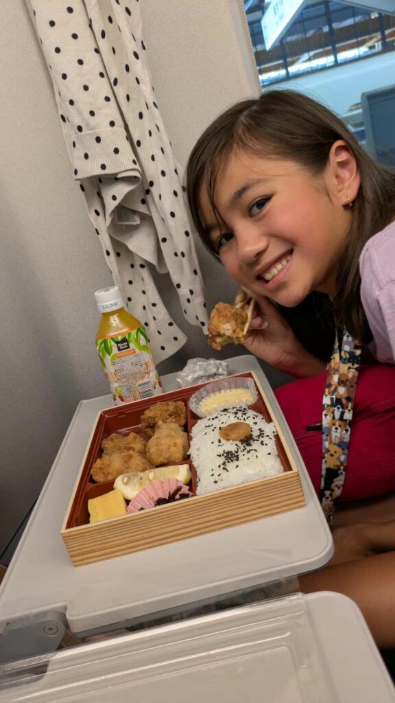 We got to the train station early enough to be relaxed about the whole departure, no rush, no sweat (literally). Bought a few bento boxes to eat on the train, one with braised shortribs, one with fried chicken, one “special autumn set” and Maylin got an egg and pork sandwich. The bullet train was FAST, and we dug into our meals. 2.5 hours later, we pulled into Kyoto, and it is even HOTTER than Tokyo!