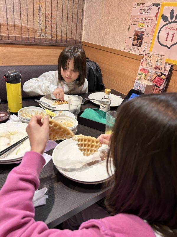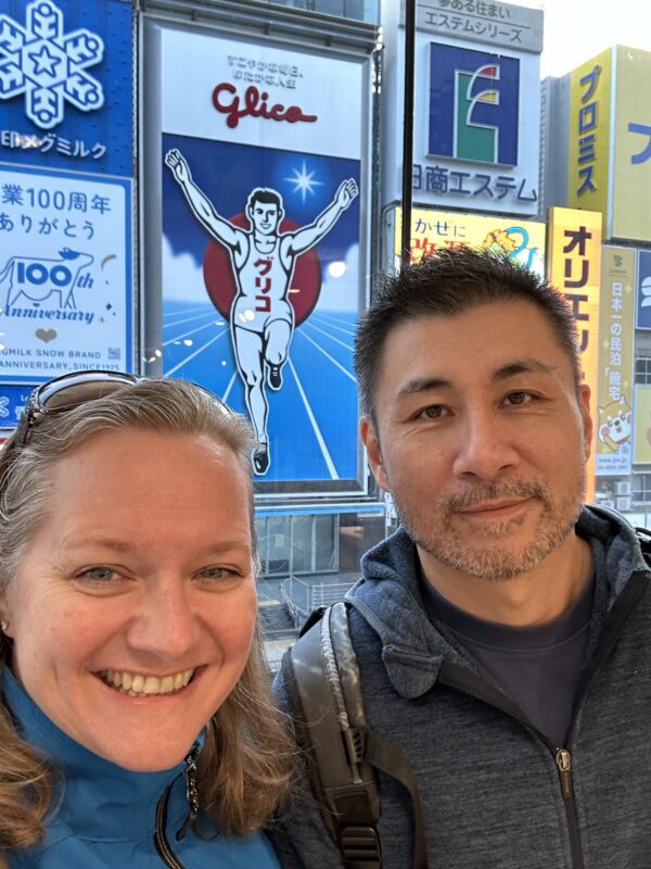 Joe’s finally back, sans boxes. They’re on route to Canada, finally! The girls are done, and we feel about 80% packed, which is ok for 24 hours left in this AirBnb. Téa and Maylin eat a Pokémon curry that Maylin insisted on getting at the grocery store a while back, I have cereal, and Joe picked up a sandwich at the grocery store. Then, we head downtown for our last Osaka outing.