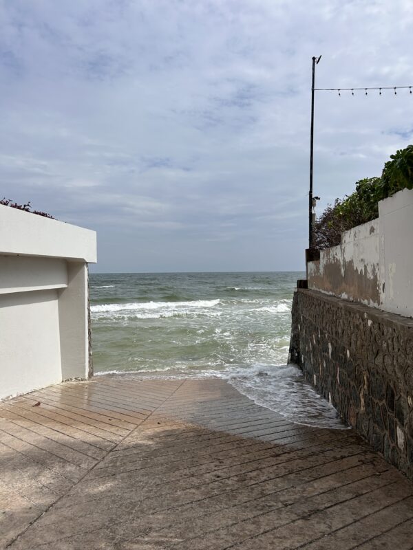 After lunch, we walked the beach one more time before finally putting our sandy feet back into our shoes and trudging back up towards the road. At the tuktuk bus depot, an eager driver tells us to come sit in his empty and about to depart tuktuk bus. It soon fills with more people, I’d say it comfortably fits maybe 10 people on seats and two standing. We have a couple of spots available still, and the driver goes slower than everybody else on the road. Curiously slow. We pick up a few more people along the way, and eventually make it to our AirBnb. We push the button, and he drops us off right across the street.