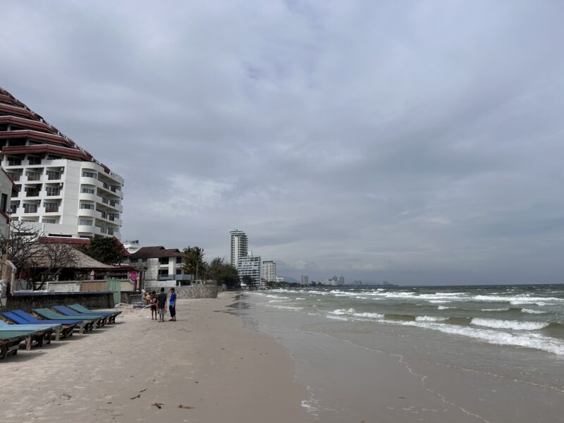It was supposed to rain all night and all day, and we had towels and swimsuits on the balcony… Luckily for us, it’s covered far enough out, and paired with the constant heat, everything was dry this morning. It also wasn’t raining! So we ate some breakfast, and decided to walk south today, towards the beach by Chopstick Mountain.