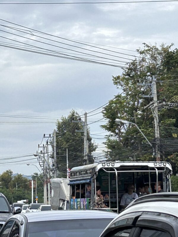 So we kept on walking, and we found where all the tuktuk buses rest when they’re not driving north or south along our strip of road!