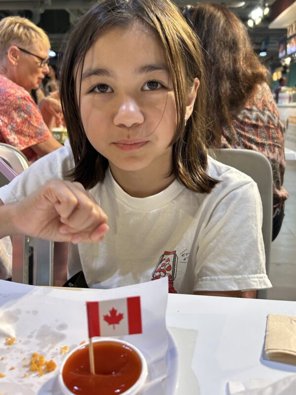 I froze three bottles overnight, Téa’s water bottle is plastic, so it freezes beautifully (just make sure to freeze your bottles either without a cap, or with the cap just loosely screwed on, otherwise your bottle will warp). We also had two plastic water bottles from yesterday’s restaurant dinner, so we reuse those. I fill them part way and lay them at an angle so that when I fill the ice bottle with fresh water, it goes the length of the bottle, and not just a top warm, bottom solid type water experience. I maaaaaayyyyyy be overthinking my frozen water bottles. But at least my family will stay hydrated and cooler during our walk today!