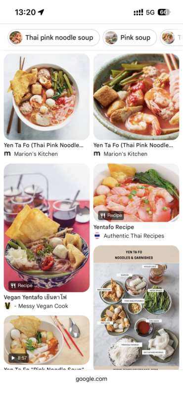 While I was in line for my spicy noodles, I noticed the lady lined up at the stall to my right had a bright pink noodle soup. I had to look a bit closer, and then I had to look it up on my phone. The only bright pink soup I’ve ever seen before is borscht, which this is NOT. Yen Ta Fo is a Thai specialty, the flavour explained as sweet, sour, spicy and funky in flavour. I may have to try it some day!