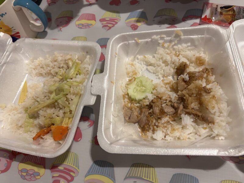 After ice cream, we’re all done at the mall, and head outside for our ride to pick us up. It’s so easy on the Grab app, just tell them where you are, where you want to go, and they quote you a price and tell you how many minutes away your driver is! So we hop into the car when it arrives, and within minutes, we are back at the AirBnb. It’s a smidge more than the tuktuk bus (like 20THB difference, not even $1CA), but it’s airconditioned and we don’t have to stand in the sun waiting for a tuktuk bus that will arrive eventually.