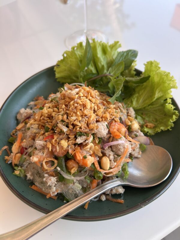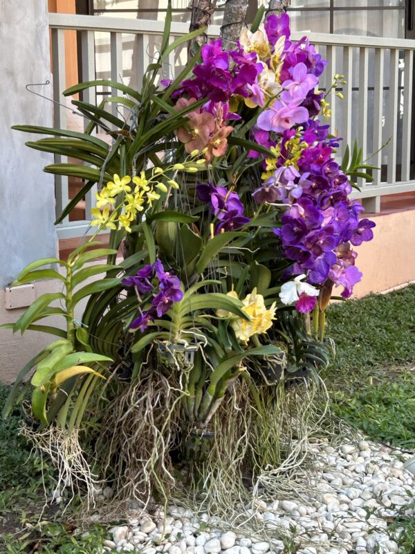 Once everyone is done their work for the day, we pack up and aim for the beach south of Chopstick/Monkey Mountain. We aim for a beach side resort with a restaurant, and book a Grab taxi to take us there. We head to Anantasila Beach Restaurant and have to walk through the resort to get to the restaurant. It sure is beautiful here! They have orchids en masse, suspended on palm trees! Their roots are showing, oh my!