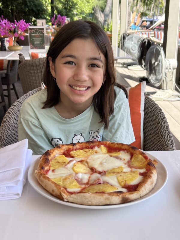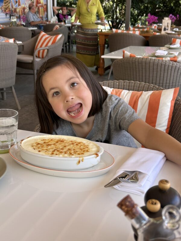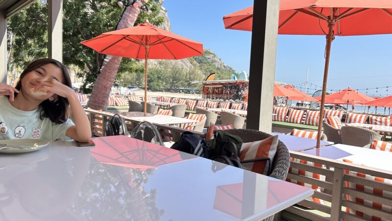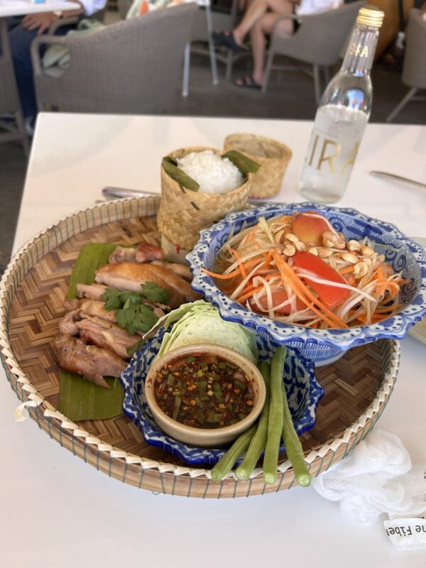We walk by their (only) pool, and into an open air restaurant which faces the beach. It is such a relaxing atmosphere, our shoulders lower and we sit in comfortable chairs, being waited on by the kindest servers. The weather is warm, and I think we’re in heaven?