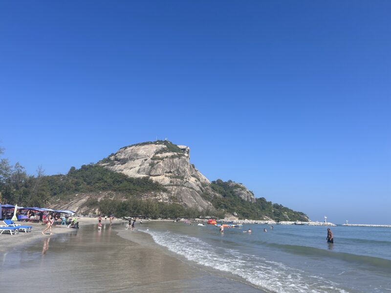 We had such a delicious lunch in the fresh sea air, with the smell of salt and sand, and the sounds of the beach. We felt thoroughly relaxed, and ready to explore the beach life. This beach is very shallow, so lots of beach area and lots of people. There are vendors selling you a sun lounger for the day, ice cream carts, I see a lady getting her pedicure while on the sun lounger, and lots going on in all directions. We really just came to check the beach out, we didn’t really bring anything to spend the day at the beach, so we wade along the beach for a bit. The beach isn’t quite as long as the one we walked the previous day, as even though there’s more beach, there are still areas cut off by high tide.
