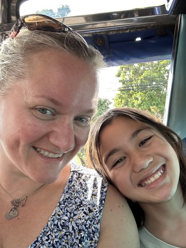 Once safely at home in the nice cool air conditioning (with the all important clean and reliable washroom readily available), Téa and I leave Maylin and Joe to hang out, while we hop on a tuktuk bus to Market Village.