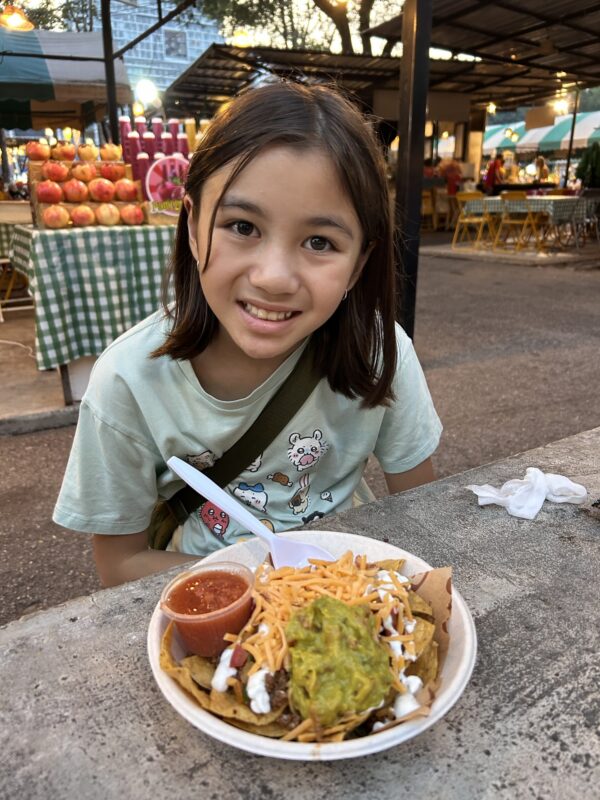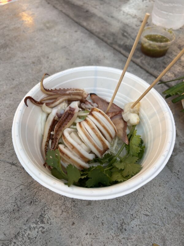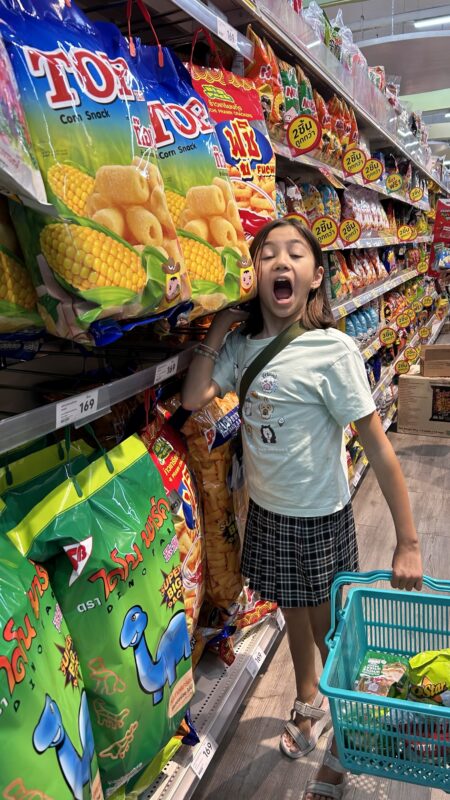 After dinner, I needed to go pick up my sandals over at the Cicada market. On our way out of Tamarind, we stop at a dress vendor Téa has been wanting to visit. She ends up getting a new dress for her birthday! On our way to the sandal vendor’s corner at Cicada, I spy a t-shirt just perfect for Maylin, and she agrees. New t-shirt for Maylin! And finally, we arrive at the sandal vendor. I placed my order last weekend, but he hasn’t notified us that they’re ready for pickup, I’m just hoping they’re ready for me. The vendor is just starting to set up, with it being 6.30pm, and the market opened at 4pm. But he has my sandals, and I walk away happy! All the girls got something new they wanted today, and Joe’s just happy we’re happy. I think?