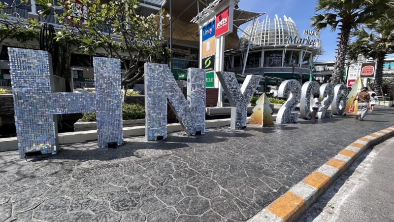 By lunchtime we were all done swimming, showering and ready to go! We took a Grab Taxi to Market Village, and I noticed they have a new sign up out front!