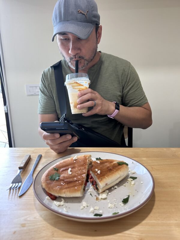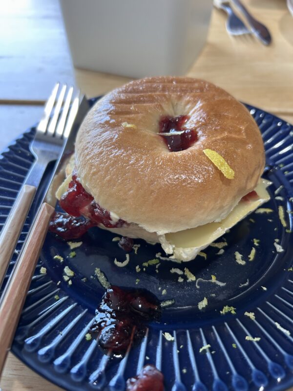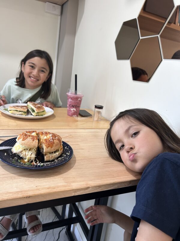 After a morning of work and new let-downs, we head across the street for a bagel lunch, as we have to be back in the apartment for the 1pm technician coming to look at the girls’ leaky AC unit… Can’t fix the bathroom floor, only to have the bedroom floor deal with water issue, that would be so silly! So yet again, our day is slightly interrupted by appointments and repairs to our AirBnb rental.