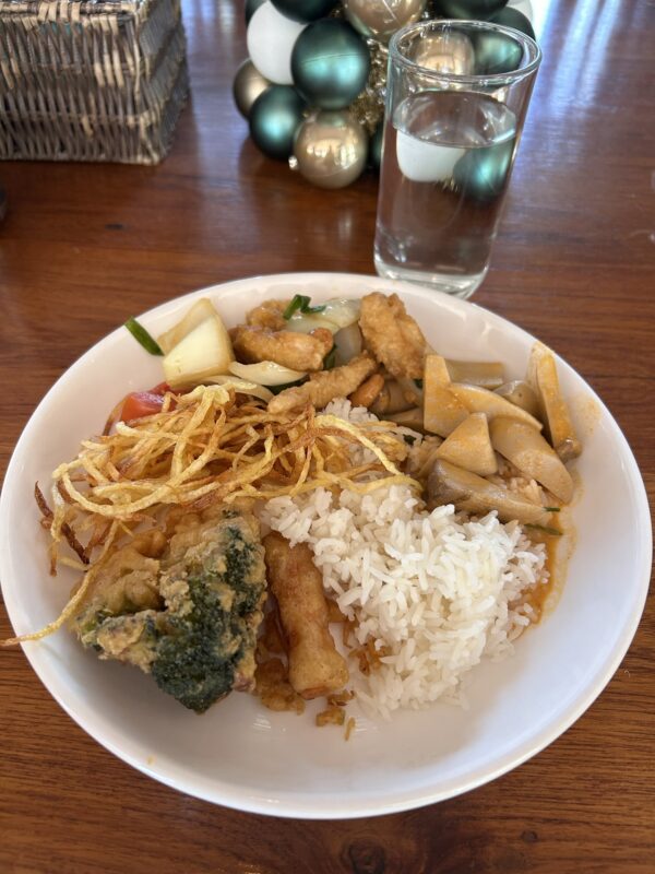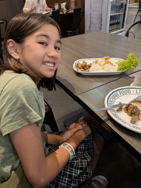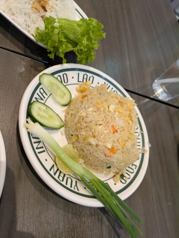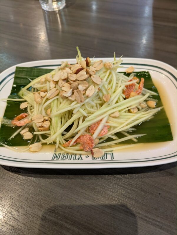 I’ve been eyeing a restaurant upstairs that seems to have a different menu than the American or Japanese restaurants we see so many of. This one was Laotian, and we had some delicious food: