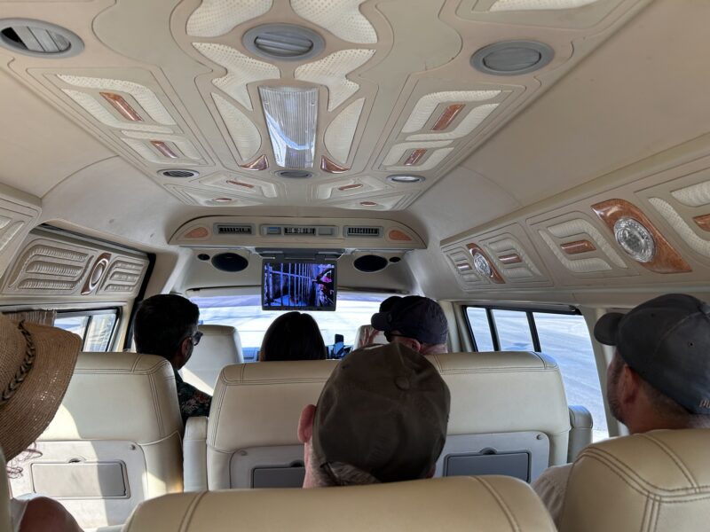 After our walk ends (it was about a 90 minute hot and dry walk, there is sand and dust EVERYWHERE, and we have drank all 6 of the water bottles we brought from home this morning), the tour bus takes us back to the base, where they serve a delicious buffet lunch: