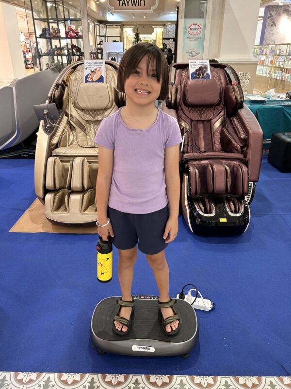 Finally the mall opens (not really words I thought I would write about Christmas Eve), and we head inside. Walking by the relatively empty massage chair vendor in the middle of the mall, there are the vibration disks just sitting there, vibrating and quietly screaming at us to come try it out. I wish I could add a video on here (but we’d run out of space for pictures with just one video of Maylin shaking and giggling), but you’ll have to make due with the photo. She’s having a blast! (So did I, although made me feel as if I had just come off a boat when I stepped off!)