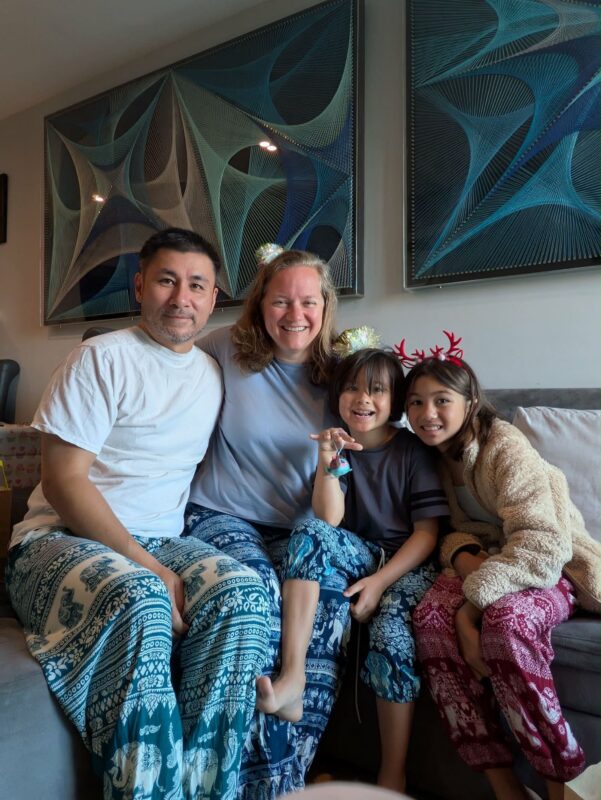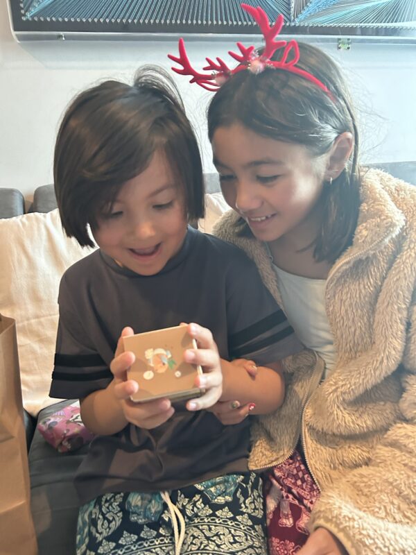 Much fun is had while we open gifts and stockings. The best gifts are of course the ones that didn’t come in our bags, but when you’re a kid, toys matter too. And yes, I did in fact carry three of Joe’s gifts from Canada through Japan to Thailand, because I got them for him in January!