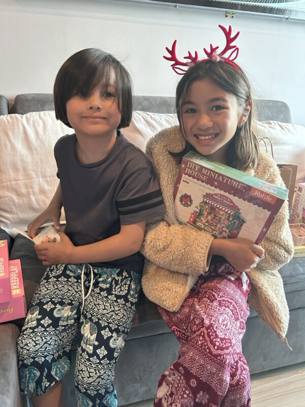 We also had paper bag stockings! We each picked a paper bag from my selection from our travels so far, for example Maylin had a Japanese Pokemon bag, Téa had an H&M bag, and Joe’s was a sports store bag. We decorated them with stickers and our names, just so Santa would know which bag belonged to whom.