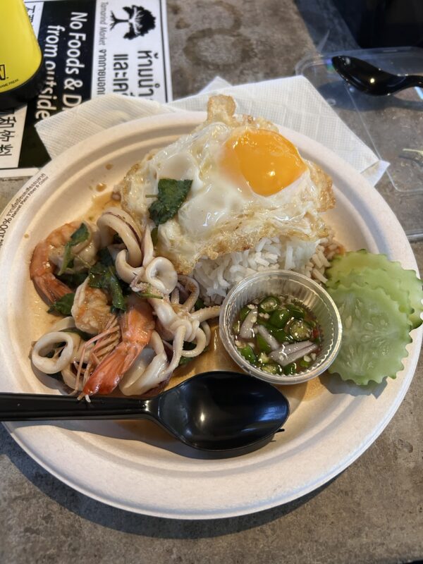 We cleared out some of yesterday’s pork leftovers for lunch, added it to ramen and slurped it all up. We are really feeling the pressure of having about a week left here, and needing to finish all the food we’ve bought. We don’t have all that much, but we need to eat more lunches at home! Dinners will still be out, after all, Tamarind market is only closed ONE day between now and our departure!