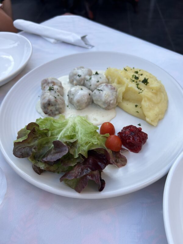 Ever since we arrived in Hua Hin, I’ve been seeing ads for two Norwegian-run restaurants: Siam Viking, one block away from Tamarind, and Little Scandinavia, ten minutes by taxi north east of Market Village. I’ve been seeing ads for Little Scandinavia’s Christmas Dinner, and I want to try it. It is (supposed to be) the pork belly I grew up with every Christmas Eve in Norway, and so I pull my bossy mom card and say I want to go to Little Scandinavia tonight. Seeing as we’re already so far north in Hua Hin, it doesn’t really make sense to go home to the AirBnb and then taxi all the way back, so we go for a super early dinner.