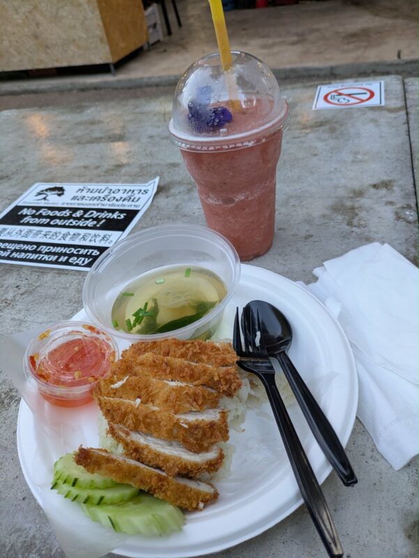 Tops Daily is our closest convenience/grocery store, with the sweet manager who seems to work 24/7, and the street dog either sleeping on the steps or being petted/fed by the taxi drivers who patiently wait and ask every foreigner if they need a “taxi taxi!”. Radish was our first restaurant in Hua Hin, right after we arrived, dumped our bags in our condo, and headed across the street. We never did go back, even though the owner (who claimed to be German, but with a strong Slavic accent) was very friendly.