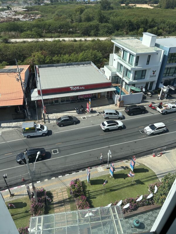 Téa and I head out to grab some last minute small ingredients for lunch, as Joe is trying to use up the rest of the noodles in the cupboard before we leave. Téa has a favourite spot at the end of our corridor, where she looks out on our Hua Hin view every morning before heading for the elevators.