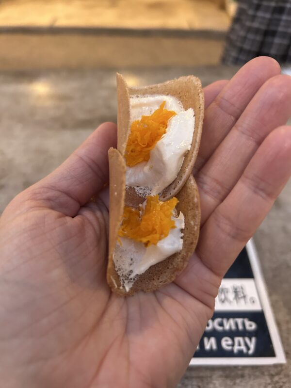 One of the last things I grabbed from Tamarind was this container of what they call “crispy butter”. It’s a paper thin cookie, similar to the addictive coconut crepes from above, but just crunchy. Delicious, but kind of missing … something? I’m sure the locals I see walking around with multiple containers of these have a secret, and that this is just part of their dessert.