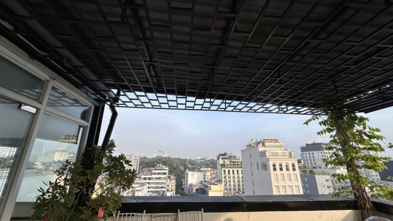 Breakfast this morning brings sunshine and an empty balcony, as we get there before the group of business men, so I sneak out to take some pictures.