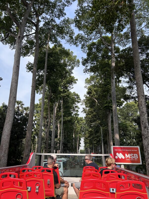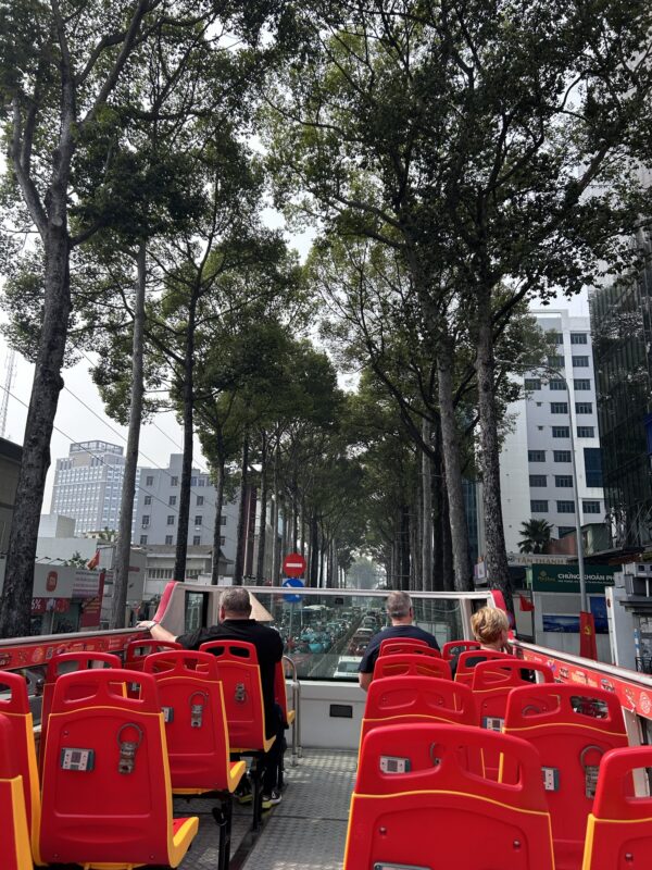 We got back onto the bus, this time the upper deck was half inside and air conditioned! We chose to sit inside, but I did venture outside to snap this picture:
