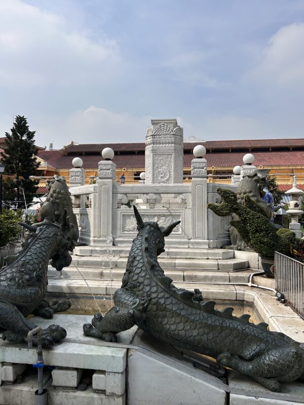 The only planned stop we have today, is the Binh Tay market, near Saigon’s Chinatown. We hop off, in the middle of a street, and have to weave in between mopeds and motorbikes to get to the entrance. This place is just as packed as the Ben Thanh market close to our hotel, but in a square building with a square plaza in the middle, which forces a different type of organization, as well as a confusing sort of aesthetic, as all four entrances and exits look identical from in the middle of the plaza…