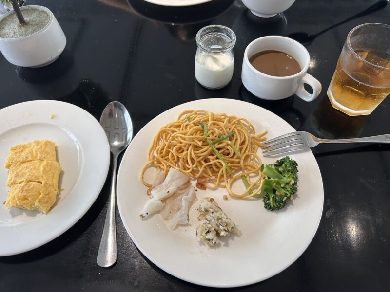 Our days start early. Why am I incapable of sleeping past 6.30am? Hopefully that’ll change at our next destination… In any case, as luck will have it, breakfast also opens at 6.30am in this hotel, so I can entice my girls to wake up and come eat with me! And when the room starts stirring, Joe is up as well. Voila, a whole family breakfast!