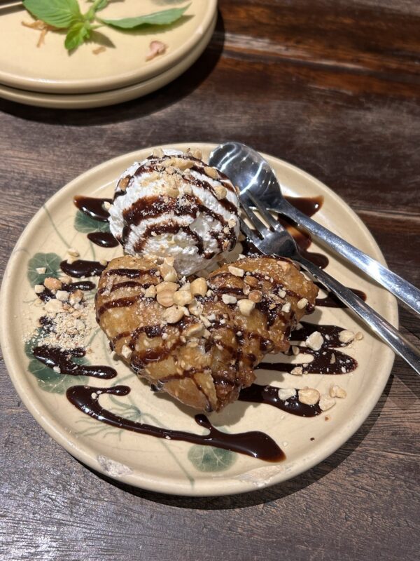 The menu is all tea. No coffee, no non-tea items whatsoever. Upon noticing the kids in our party, the staff member recommends an Oreo blended milk tea. Ok, I guess, but the girls have to share it, we’re not ordering a beverage each and then have two extra if they don’t like it… I ordered a Lapsang Souchong milk tea, and knowing the tea from before, I was hoping to taste it. It tasted more like milk than anything else, not even a hint of the smoke the name Lapsang Souchong promises. It is supposed to taste like you’re sitting around a campfire!