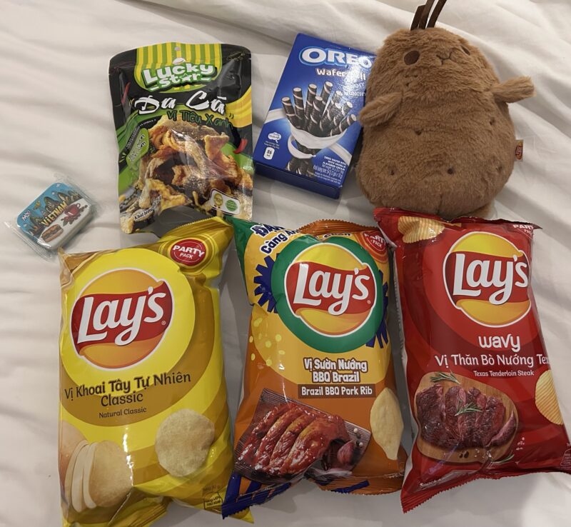 After dinner, it’s no longer raining, but it’s still good that the walk home is a short one. Téa and I walk around the corner to go find some snacks at Circle K, and end up buying THREE bags of chips because of a “gift with purchase” of a potato stuffie… We figure we’ll need them for Thursday’s super long train ride anyways!
