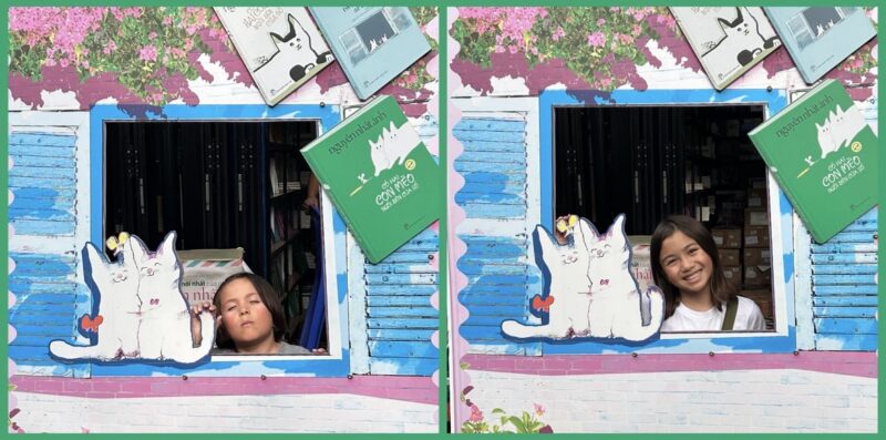 Right next door, quite literally, is the street known as Book Street. It’s a collection of super cute book shops, cafés and gift shops. Most of the books are in Vietnamese, of course, but Téa’s eyes lit up when we came across books in English! Only, they were old classics and business themed, not exactly popular tween reads…