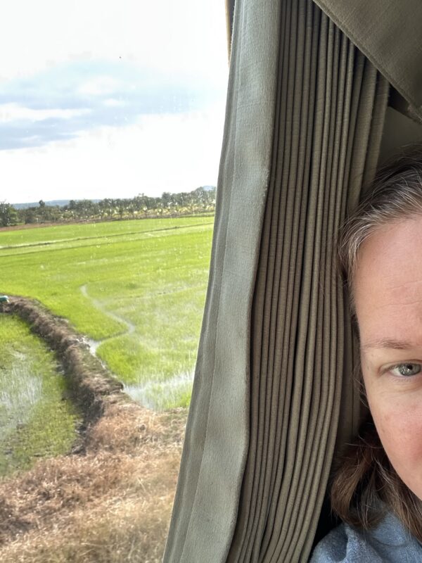 Turns out we were just toooooo early. The website said to be there 30-60 minutes before departure, or 1-2 hours if you had oversized luggage. With our bags, I was SURE they’d make us check them, at least the three big ones! But no, the lady just waves us through, tells us to bring it all into our little cabin. I have my doubts, and think we’ll be sitting with our feet on our suitcases the whole way to Nha Trang.