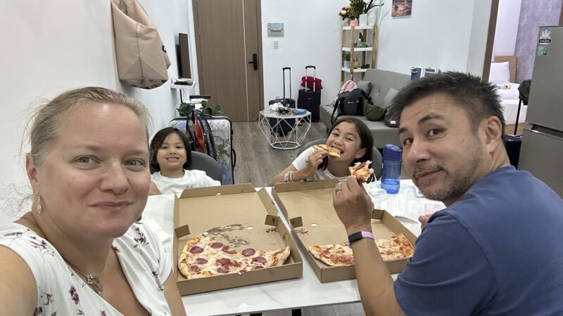 The sun sets (unfortunately not where we can watch it) and suddenly it’s pitch dark outside. An hour after that, we roll into Nha Trang station. We grab a Grab taxi, and arrive at our AirBnb for the next three weeks. We’re tired, we’re hungry, it’s been a long day, and it’s chilly. It’s surprisingly windy, and we long to get into our AirBnb.