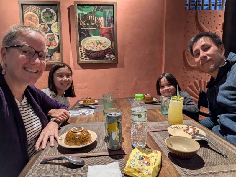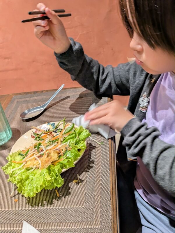 Unfortunately, despite the potential of the beautiful restaurant with plenty of staff and several floors of empty tables, we had yet another disappointing dinner. But I think that’s just Joe and I. We’ve gotten so used to fresh and delicious Vietnamese food, so when faced with dishes made with more haste than care, we sulk. The girls are better at seeing it as “just another meal”, and they order what they are pretty sure they’ll like. Do Joe and I need to readjust our expectations?