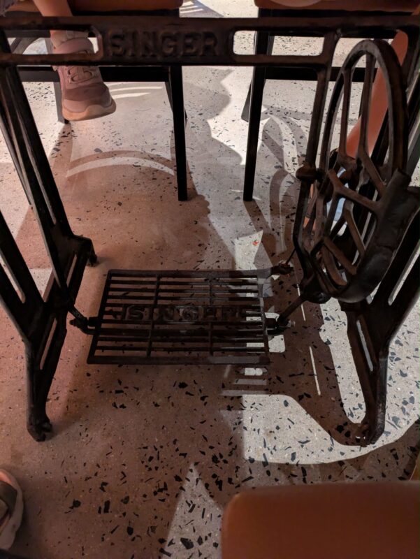 I think I saw first Singer “sewing machine” table around 20 yrs ago. In one restaurant I could still move the pedal. No sewing do